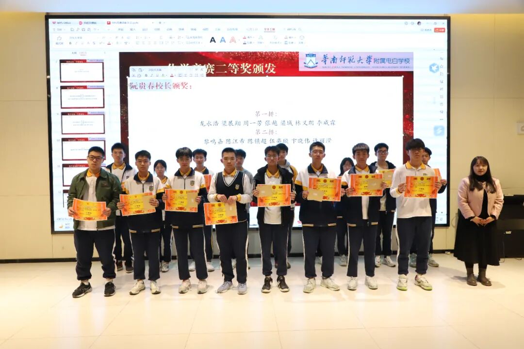 ![]() 学科竞赛表彰大会 ![]() ![]() ![]() 高一级长张卫忠致欢迎辞,并强调学科竞赛在推动教学发展中的重要作用,感谢集团和学部领导对高一年级的大力支持和密切关注。 ![]() 颁奖仪式 ![]() 物理 ![]() ![]() ![]() ![]() ![]() 生物 ![]() ![]() ![]() ![]() ![]() ![]() 化学 ![]() ![]() ![]() ![]() ![]() ![]() 数学 ![]() ![]() ![]() ![]() ![]() ![]() 集团领导为优秀指导教师颁奖 ![]() 教师代表高乐发言 ![]() ![]() 最后杜琳波总经理表达了集团领导对高一年级的深切厚望,他表示集团会在今后的工作中,给予年级教学、学科竞赛和培优辅差的大力支持。同时也会引进优秀人才和优师名师,助推高一年级学科建设和优尖人才培养的快速发展! 附获奖名单 物理 一等奖: 杨凯兰 陈毅 莫泳仪 赖柏成 凌烨 二等奖: 黎鸣嘉 梁域 黄重钦 黎开健 欧汶宽 池嘉耀 叶子荣 梁泽昊 杨骐硕 陈俊明 钟润龙 三等奖: 董文佩 黄晓敏 于瀚博 杨浩霖 陈秋宇 陈泓杰 陶柏文 陈志周 陈炜宇 陈建城 邓立朗(第一排) 欧柏麟 钟源 黄健恒 黄冠明 廖清榆 李明哲 麦曦瑜 陈正晟 陈柏宇 郑楠 杨诗苑 陈星烨(第二排) 林灏华 严子博 张玮宸 廖锦杰 蔡可儿 陈奕瑜 李定源 梁烨堃 姚梓健 卓晓宇 张德棋(第三排) 化学 特等奖: 于瀚博 一等奖: 朱春儒 赖泓霖 严子博 杨凯兰 柯炜毅 崔智乐 张子锋 陈佳航 二等奖: 龙永浩 梁展翔 周一芳 张越 梁域 林义朗 李威霖(第一排) 黎鸣嘉 陈汪希 陈镇超 伍奕璇 卞晓伟 许丽滢(第二排) 三等奖: 巫宇恒 苏德 石梓逸 黄健恒 刘付宇轩 谢智辉 黄君龙 吴松轩(第一排) 陈昱兆 李美萱 蔡东鹏 杨尧骏 曾凡宸 陈立铭 朱容莹 许文译 张晋铭(第二排) 生物 特等奖: 一等奖: 李轩章 赖泓霖 凌烨 朱容莹 庞锦莹 邱芊弈 梁展翔 池嘉耀 二等奖: 三等奖: 劳靖轩 梁伟鑫 曾华烨 欧文皓 黄海杰 谭佩贻 李思慧 林义朗 吴林峰 叶子荣 温紫瑶 杨诗苑 王炫尹(第二排) 数学 一等奖: 简政浩 袁子卫 梁家铭 朱春儒 崔伟钜 黄健恒 赖泓霖 彭元辉 吴东源(第二排) 凌烨 黄何笑 陈建城 李柏毅 陈泓宇 李浩宁 梁域 陈立铭 欧汶宽 钟润龙(第三排) 二等奖: 唐健铭 梁伟鑫 吴东择 杨浩霖 梁展翔 黎鸣嘉 黄家悦 郭振杰 盘庚 林义朗 李晓勇(第一排) 颜荣江 陈再裕 赖可儿 陈昱兆 叶子荣 曾华烨 张健 卞晓伟 吴春荣 谭佩贻 黎力豪 周羲霖(第三排) 劳诗棋 李美萱 陈治豪 钟源 陈秋宇 张诗琪 朱嘉远 邓嘉满 何茗翰 黄浩铭 董学霖 崔智乐(第四排) 崔家期 李威霖 陈俊宇 梁峻豪 温家诺 石梓逸 何颜宏 钟诚 张越 吴宗谕 曾凡宸 邓景鹏(第一排) 陈冠铭 陈炜宇 黎开健 蔡可儿 郑楠 陀景尧 吴轩 陈柏宇 邱楚钧 易远滔 李鸿周 梁日升 杨尧骏(第三排) 优秀指导教师 潘科、李小站、易华锦、蒙德慎、廖平、高乐、黄劲、赵志伟、蓝杏、吕豪辉、李淼、彭嘉婵、陆宜新、黄汉凤 ![]() ![]() ![]() ·END· 排版编辑:李蕙廷 文稿提供:张卫忠 初次审核:潘 科 审核发布:邓维贵